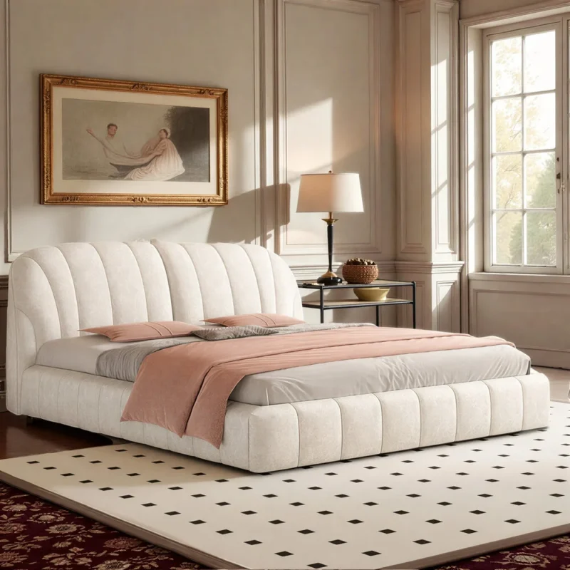 Soft, padded frames with plush headboards add luxury and comfort. Perfect for cozy, high-end interiors.