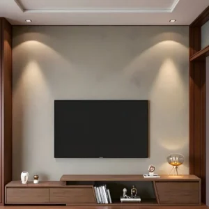 While high-gloss and marble finishes reflect luxury, TV units bring natural warmth and texture. Materials like MDF blend beautifully with both modern and rustic interiors.