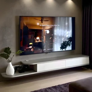 Wall-mounted TV consoles or floating units are one of the most popular choices for modern apartments and villas in Dubai. They save floor space, provide a clean, organized appearance, and make cleaning easier.