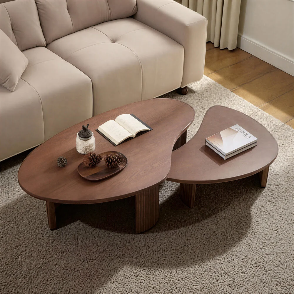 Discover versatile elegance with the Nested Oval Coffee Table Set, a dynamic duo of modern nesting tables that bring fluid sophistication to any living space. Crafted in a rich, dark-toned finish, these oval nested coffee tables feature seamless, organic curves that nest compactly for small apartments or expand effortlessly for larger gatherings—ideal for displaying artisanal books, seasonal pinecones, or aromatic diffusers alongside your favorite neutral sofa. The larger table anchors the scene with its generous surface, while the smaller one tucks away or pulls out as needed, embodying minimalist Scandinavian design with a touch of bohemian warmth.