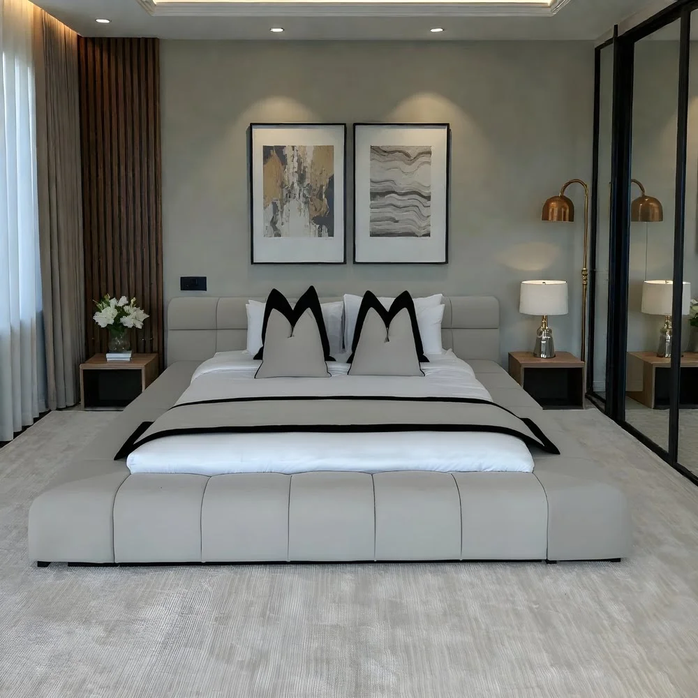Ideal for minimalist, modern luxury, neutral, or transitional interiors, this bed transforms any master suite into a high-end retreat — perfect with layered bedding, metallic accents, and abstract art.