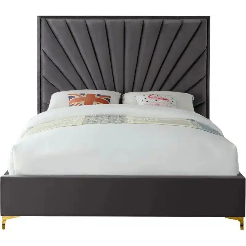 Find your sanctuary with this stunning velvet-upholstered bed that exudes modern elegance. The impressively tall headboard makes a bold statement, turning your bedroom into a luxurious retreat. Its plush, padded design is perfect for leaning back with a good book or catching up on your favorite shows.