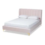 Transform your bedroom into a chic sanctuary with the stunning Saverio bed. Upholstered in plush, luxurious velvet with a subtle sheen, this bed features a wood frame that promises both style and durability. The traditional channel tufting on the headboard highlights the richness of the fabric, while its majestic wingback shape adds a touch of grandeur. Complete with elegant gold-tone metal legs, the Saverio bed exudes sophistication.