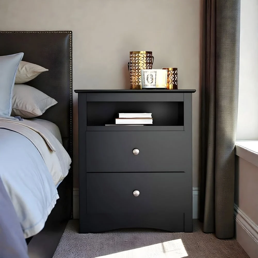 Transform your bedroom with this stylish nightstand that not only adds flair but also offers practical storage solutions. Its sleek black finish effortlessly complements any decor, featuring a contoured top, charming side moldings, and an elegant arched kick plate. The two drawers provide ample space for your essentials, while the open shelf creates a perfect spot for your favorite books or decorative items.