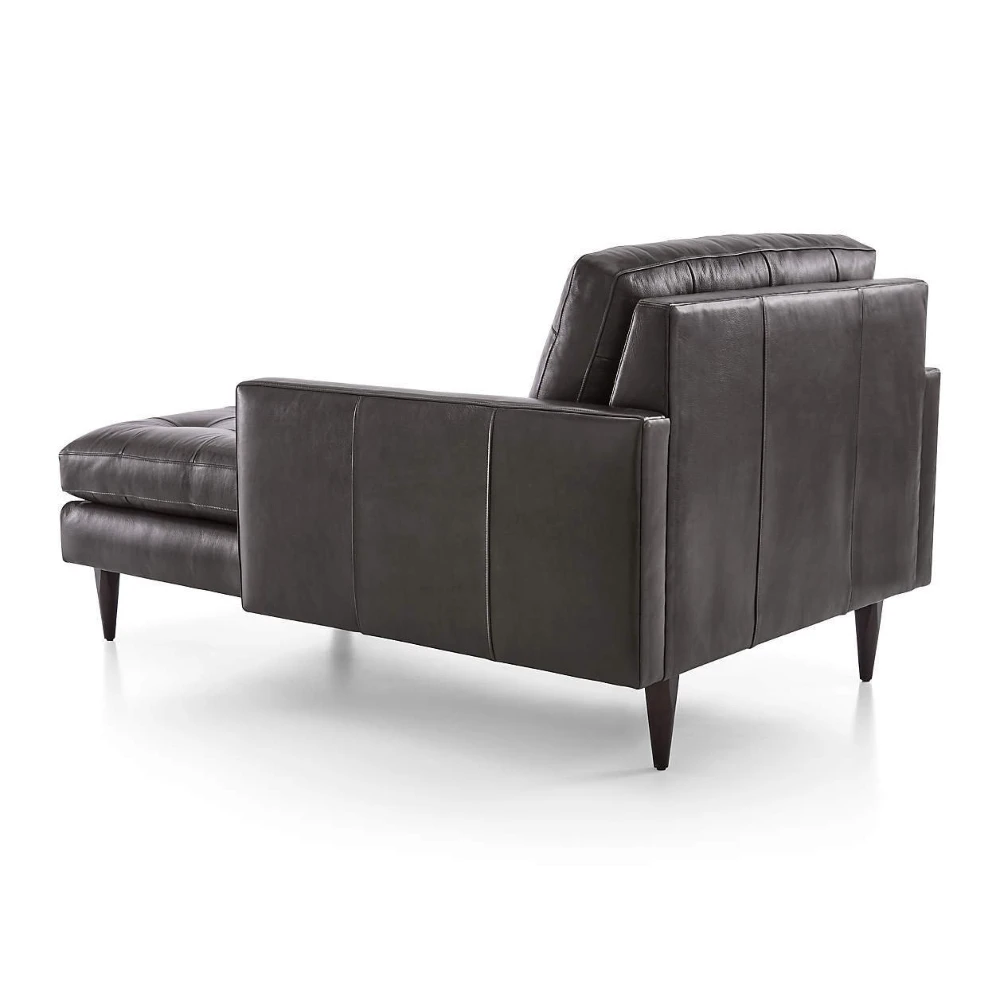 The chaise lounge captures the essence of 2010s style, offering a deep, inviting seat that encourages you to relax and stretch out comfortably. It’s become a modern classic, featuring luxurious PVC leather that develops a beautiful patina over time. The sleek, boxy cushions and narrow track arms give it a refined and polished look, making it a standout piece in any room.