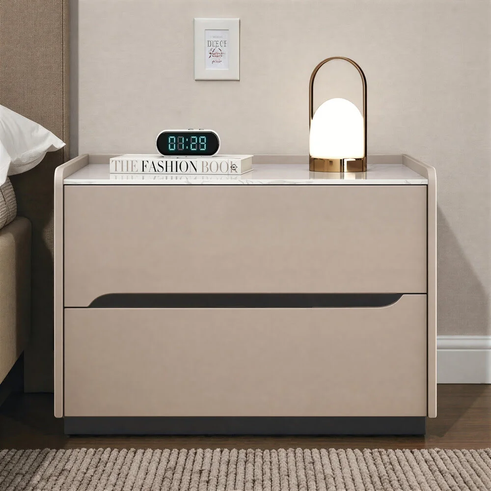Transform your bedroom into a tranquil retreat with the Taupe Gloss 2-Drawer Nightstand, where warm neutrals meet sleek sophistication for an effortlessly chic vibe. This modern essential features a soft taupe lacquered body that exudes understated elegance, paired with a luminous white glossy top that serves as the perfect canvas for your bedside favorites – think a glowing arched lamp, a stylish digital clock”. The polished surface resists fingerprints and spills, ensuring your space stays pristine from dawn till dusk.